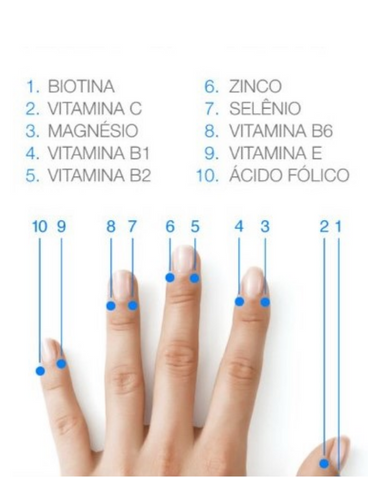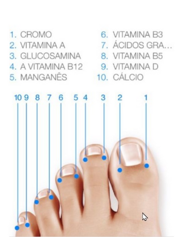 Para verificar os níveis de vitaminas e minerais no seu organismo, basta encostar o dispositivo nos pontos da mão e do pé esquerdos, conforme ilustrado abaixo.